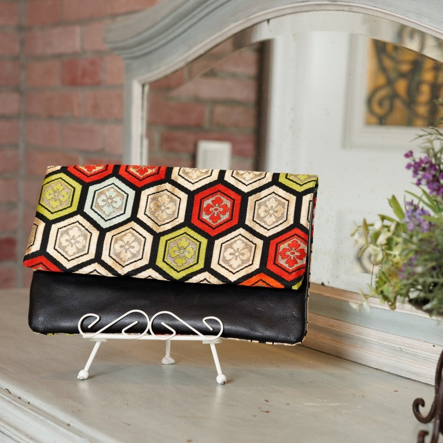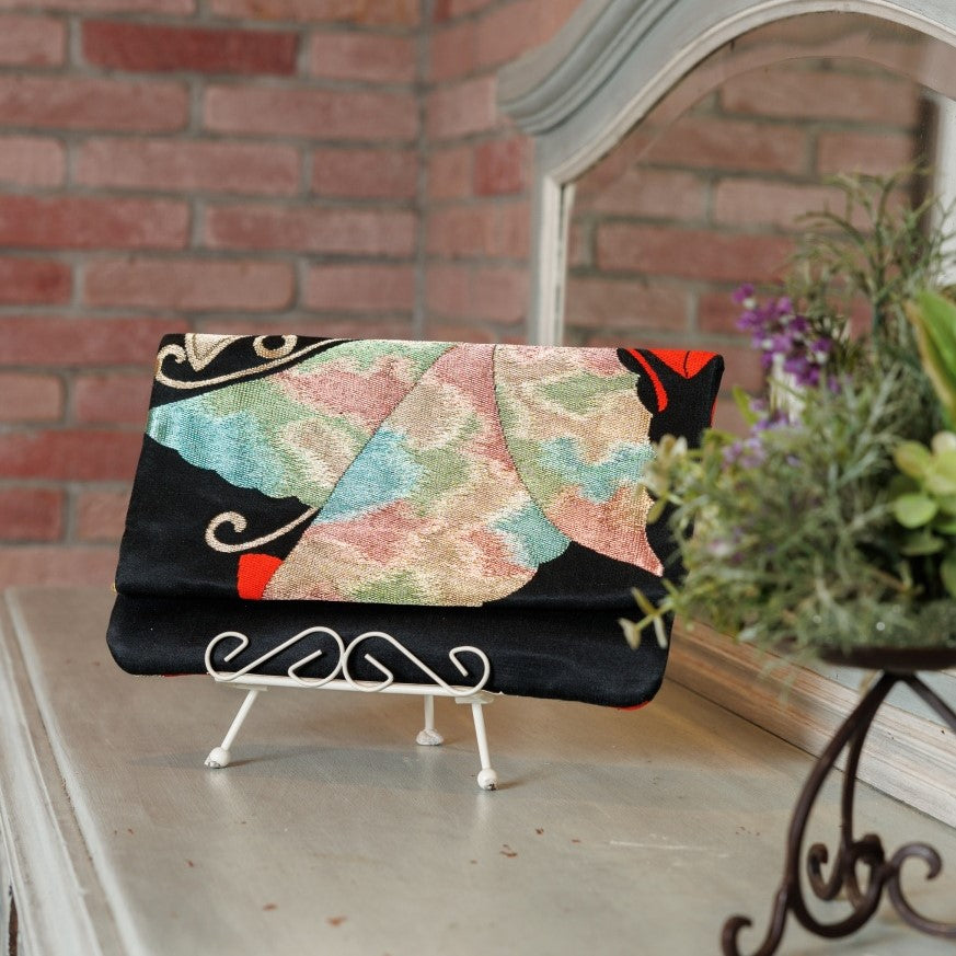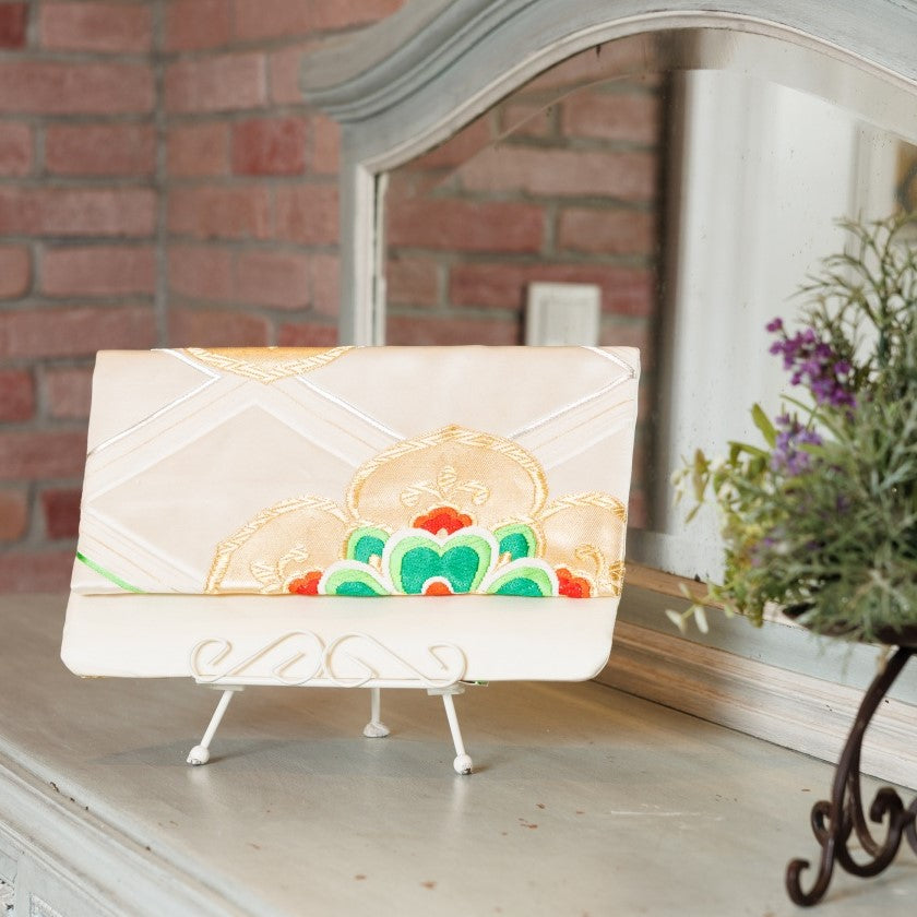 日本の着物の帯をリメイクしパーティに活躍するクラッチバッグ。