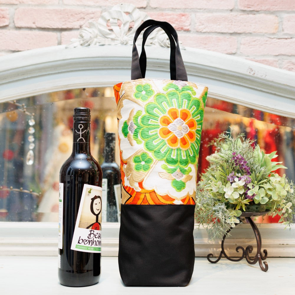 日本の着物の帯をリメイクしワインバッグを制作しました。