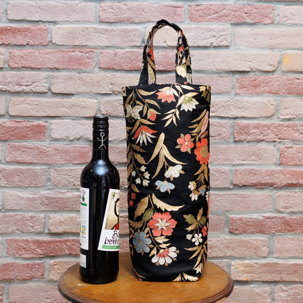 京都の西陣織の帯を使用しています。ホームパーティにワインや日本酒を入れてプレゼントするときっと喜んでくれるでしょう!