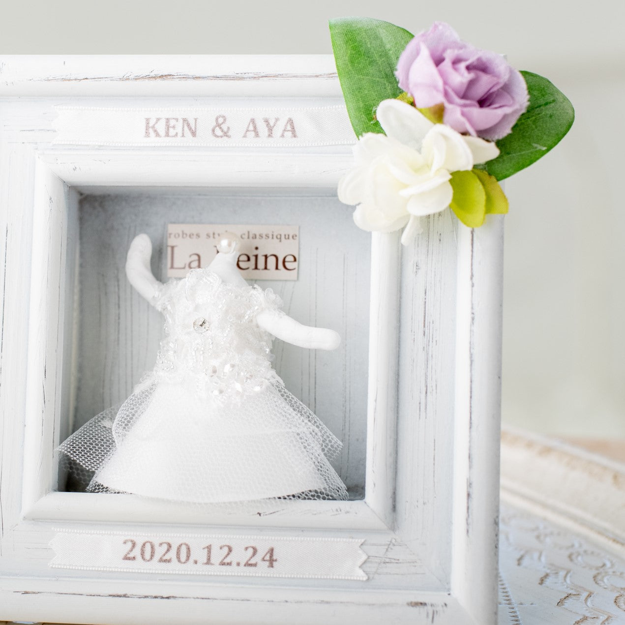 あなたの思い出のドレスをミニチュアにしてフレームに収めて仕上げます。